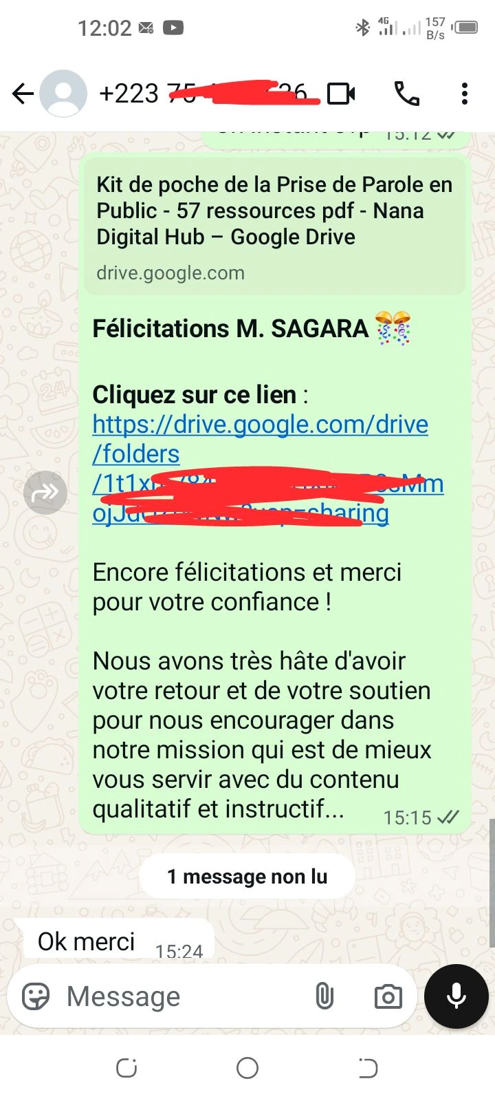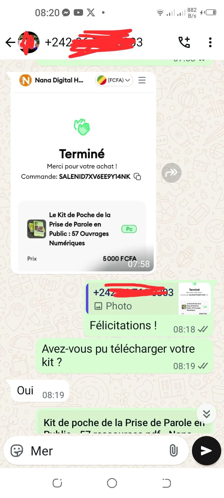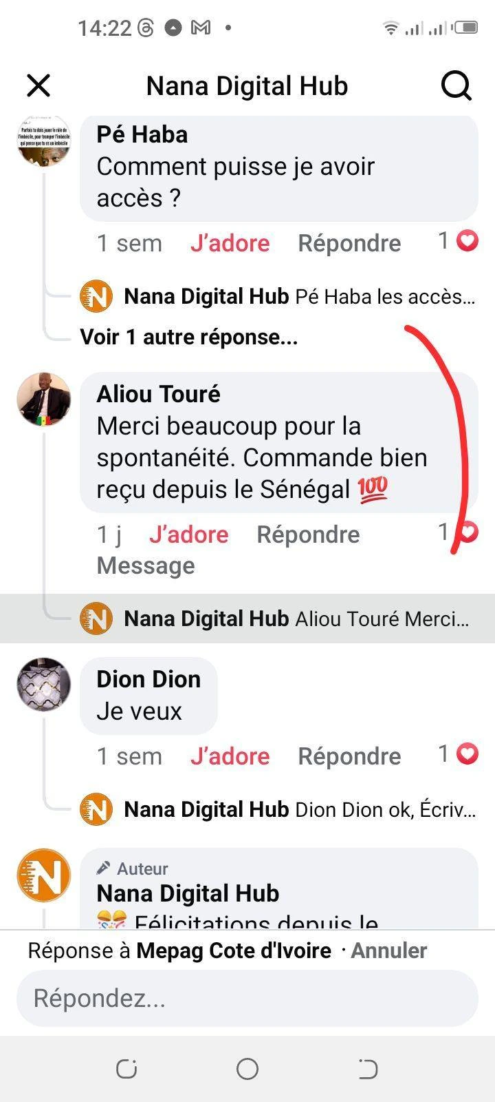 • Si le problème persiste, contactez-nous via WhatsApp au +22674021607 ou par email à contact@nanadigitalhub.com pour obtenir de l’aide.