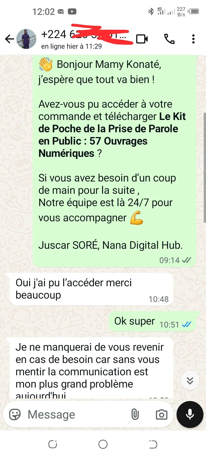 • Le Guide Bonus « 2000 Expressions Pour vos Prises de Parole en Public » (Valeur 15000 Fcfa) : Phrases percutantes, réparties cinglantes, transitions fluides… Dites adieu au syndrome de la page blanche !