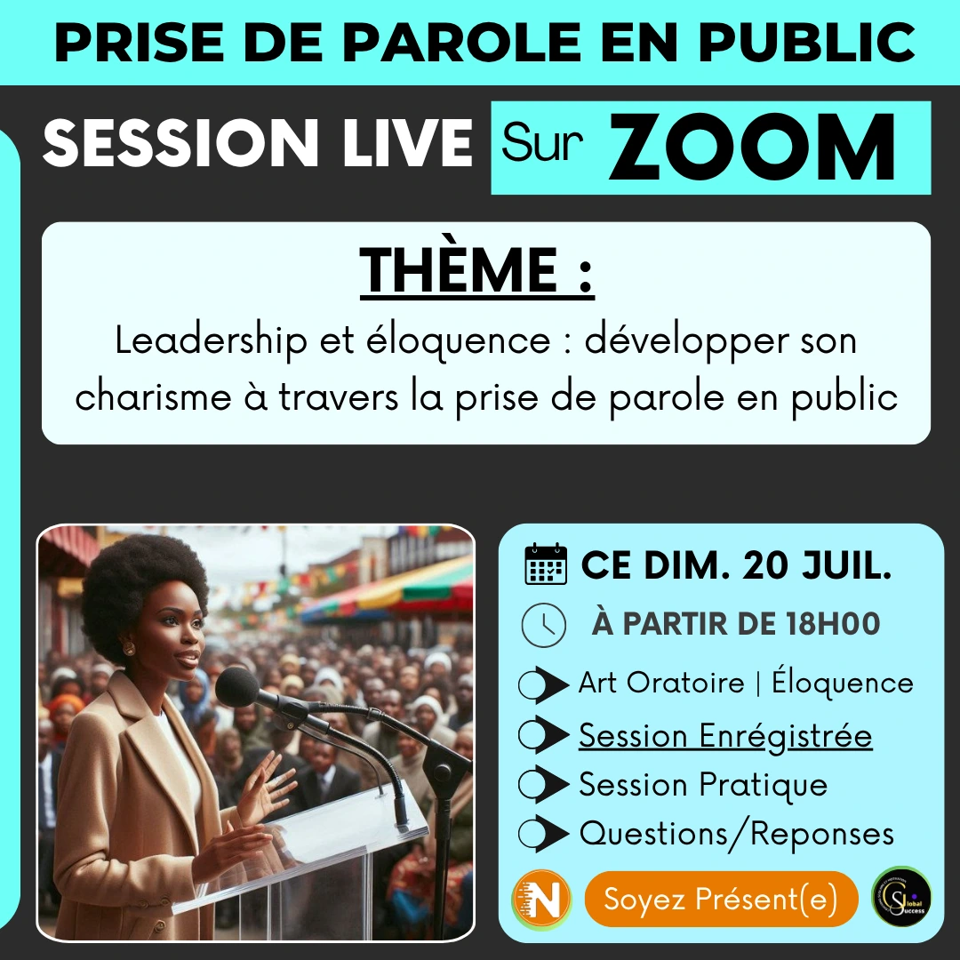 📅 Chaque Dimanche, un Docteur et Coach certifié en Art Oratoire anime un atelier en direct sur Zoom.